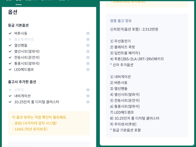 ** 사각지대 감지시스템, 순정네비, 통풍시트, 10.25인치 풀 디지털클러스터 등