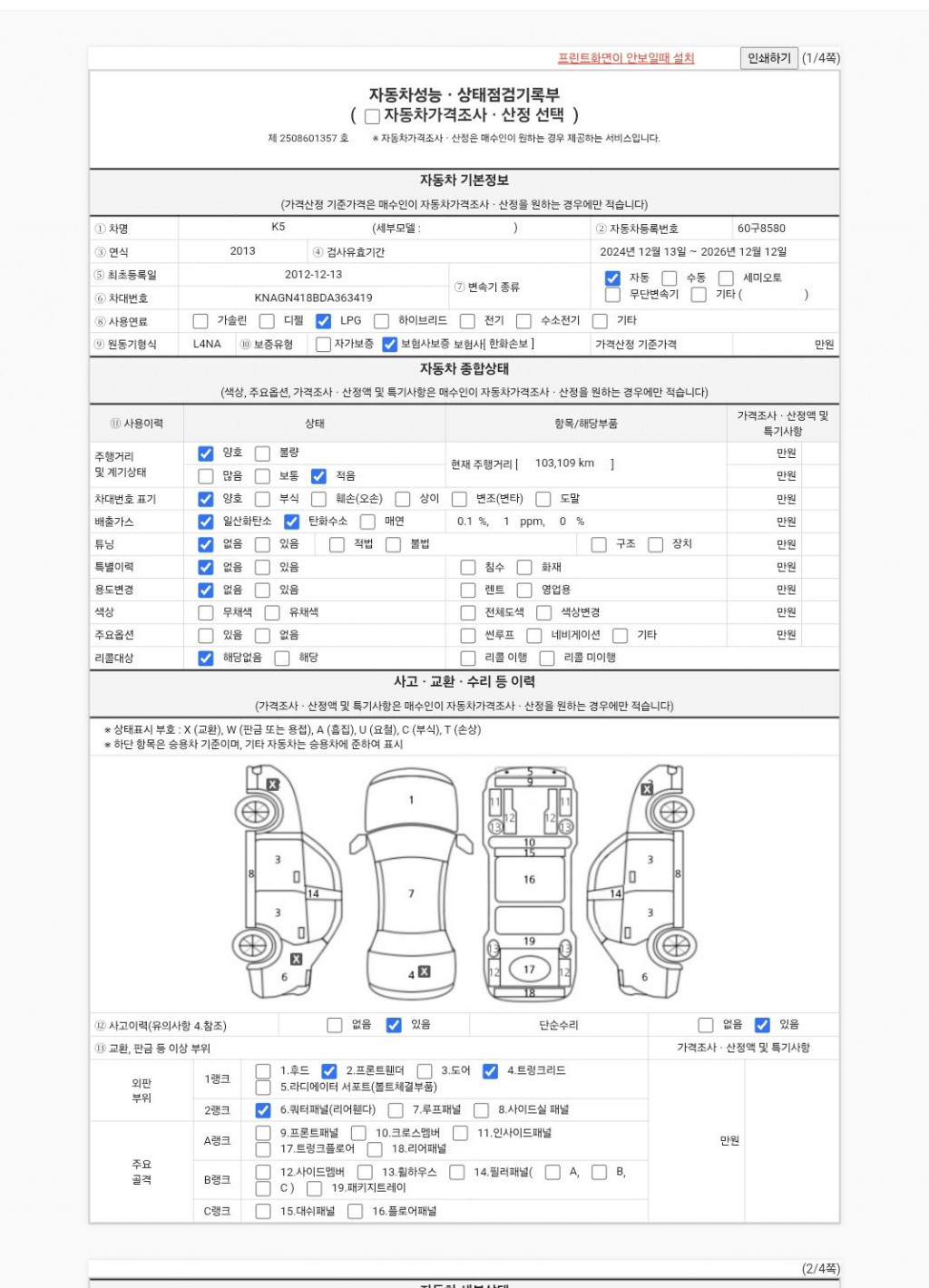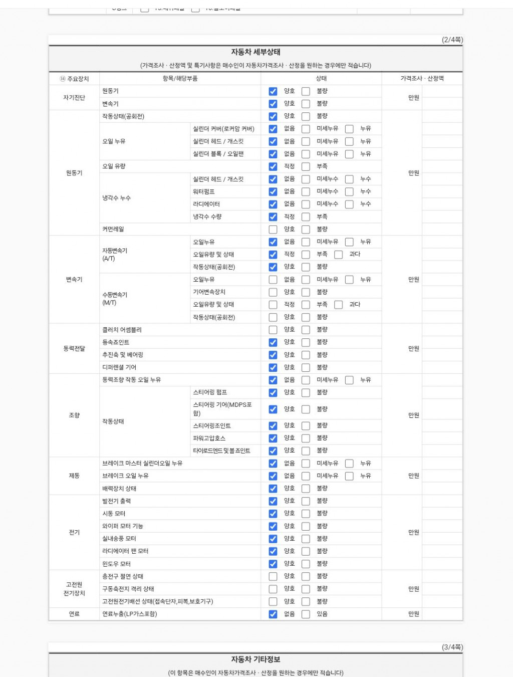 | 외판부위 | ○ 후드 ○ 프론트 휀더 ○ 도어 ○ 트렁크리드 | ||