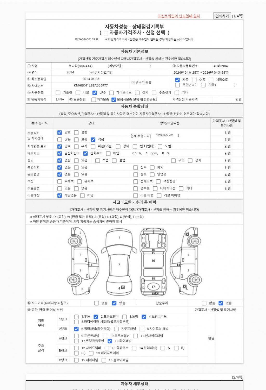 | 외판부위 | ○ 후드 ○ 프론트 휀더 ○ 도어 ○ 트렁크리드 | ||