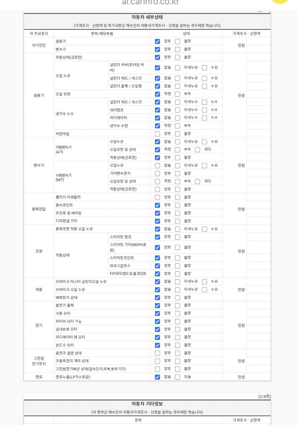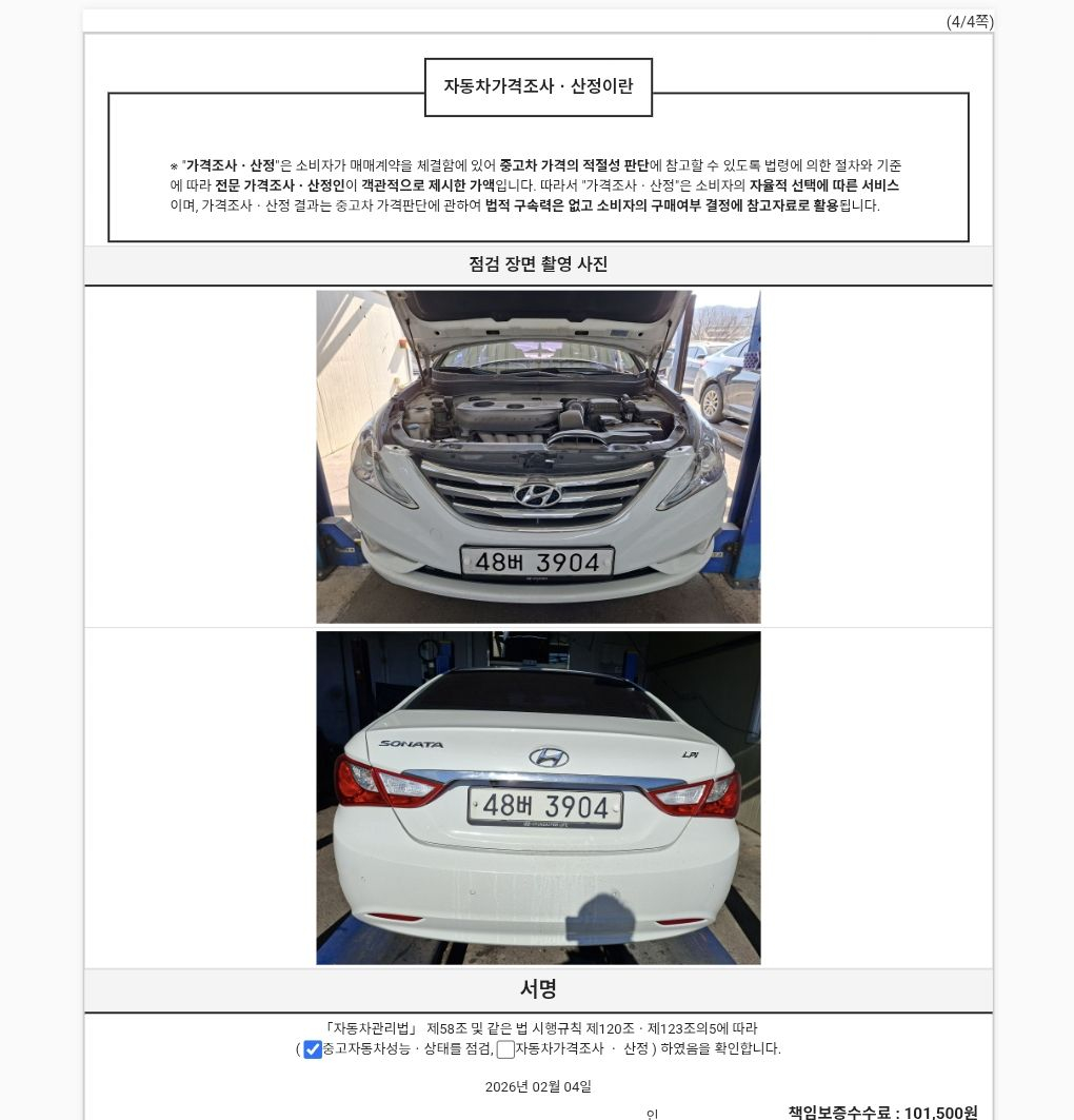 | 기타 | 성능점검기관별 성능점검 서비스차별화를 위하여 보증항목을 추가할 수 있음 | ||
