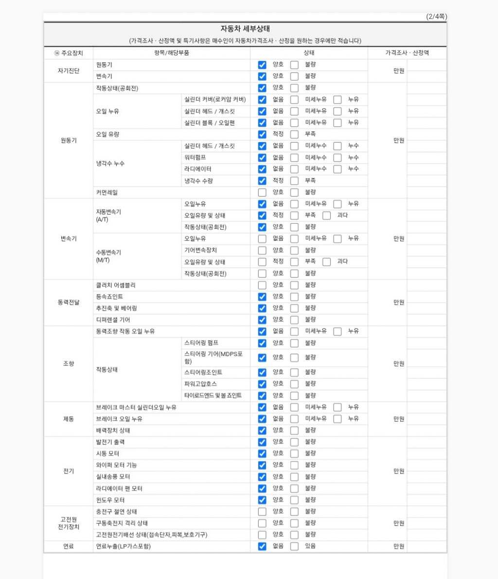 | 기타 | 성능점검기관별 성능점검 서비스차별화를 위하여 보증항목을 추가할 수 있음 | ||