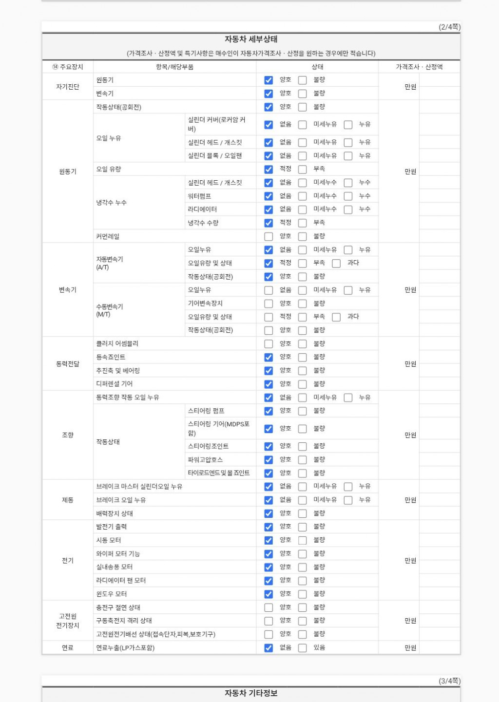 | 기타 | 성능점검기관별 성능점검 서비스차별화를 위하여 보증항목을 추가할 수 있음 | ||